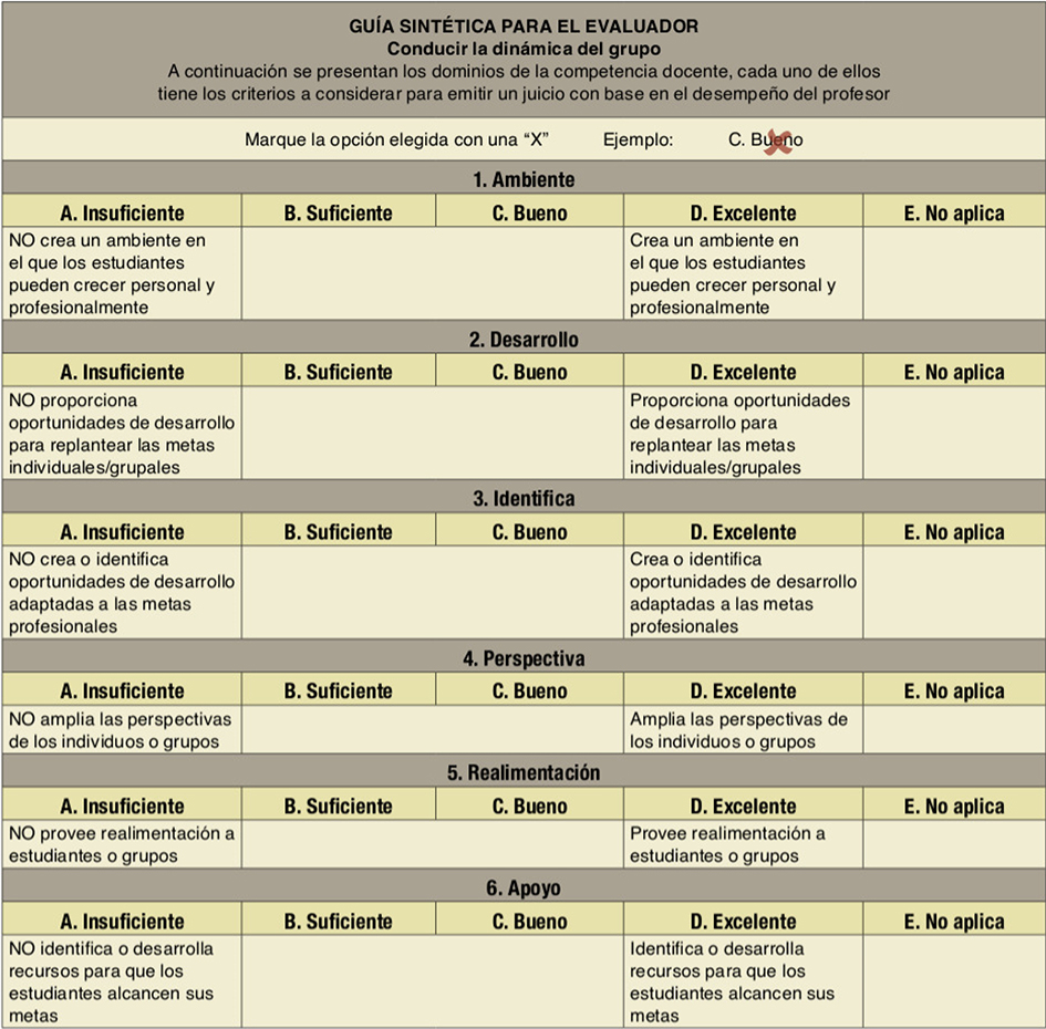 El docente requiere de competencias disciplinarias, psicopedagógicas, de comunicación, investigación, humanísticas y administrativas9. Estas deben ser evaluadas con la finalidad de tomar decisiones sobre las áreas de mejora laboral y de su actividad educativa en el aula.