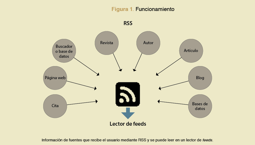 El uso de la información en la web es más sencillo y eficiente si se sigue un proceso adecuado y se aplican los recursos pertinentes para cada función, por ejemplo: para navegar se usan los navegadores o exploradores, para buscar se utilizan los motores de búsqueda, los metabuscadores y las bases de datos, para marcar (guardar la información y clasificarla), se usan los favoritos o marcadores, para generar bibliotecas, realizar referencias, citas y hacer notas a la bibliografía se utilizan los gestores de bibliografía y para actualizar información y tener inmediatez están las alertas, los grupos, las redes sociales y los lectores de RSS. Seguramente el lector reconocerá todos los recursos electrónicos mencionados arriba y usará algunos, pero los RSS, aunque están disponibles en muchas fuentes de información en la web y aparecen en varias aplicaciones académicas, pocos conocen su significado y aún menos los reconocen y los usan.