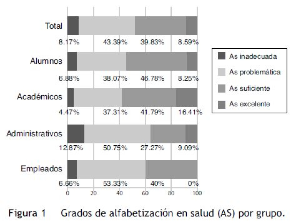 Figura 1. Grados de alfabetización en salud (AS) por grupo.