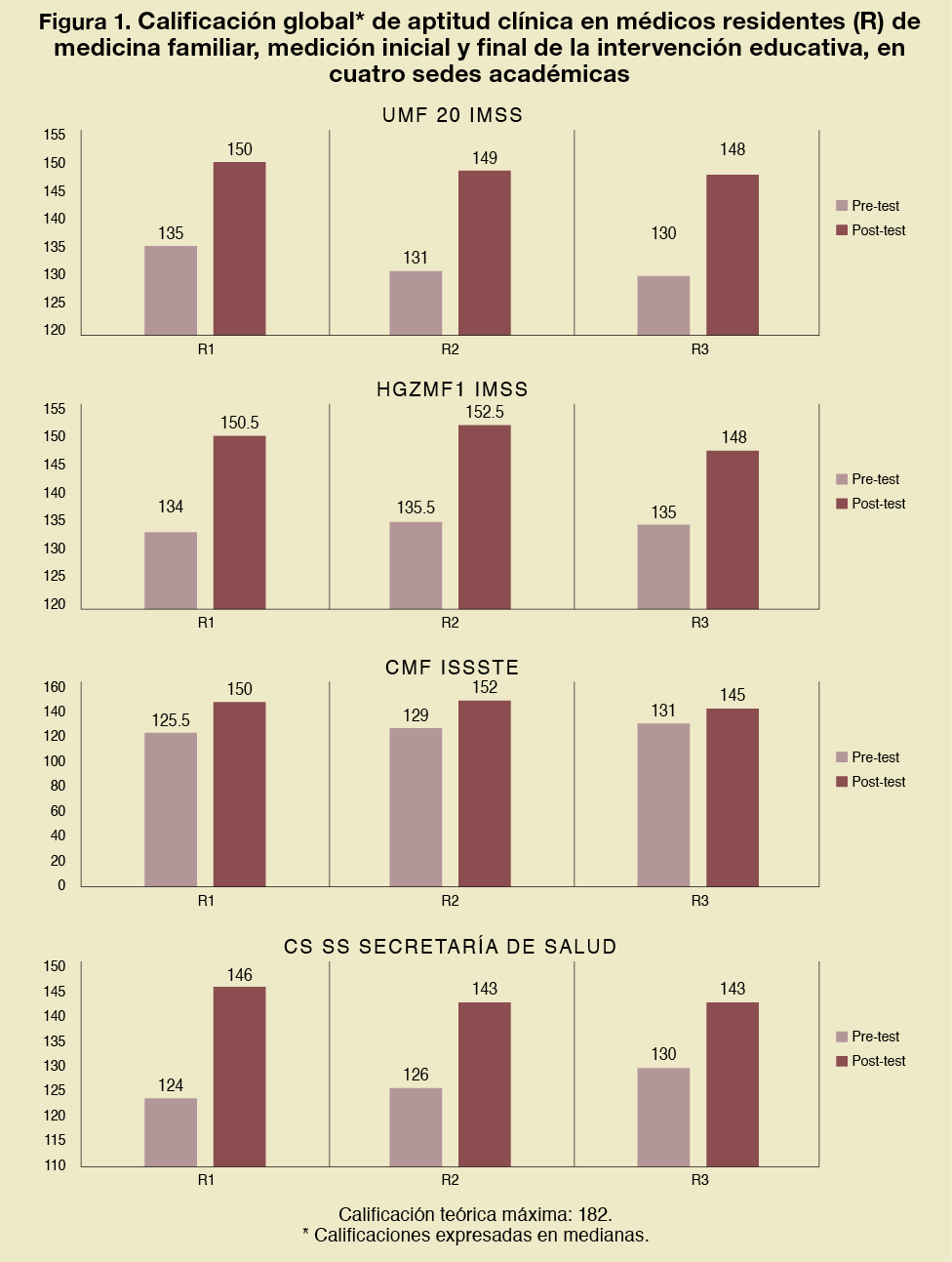 Results: By year of residency, in the overall rating of the indicators, statistical differences were estimated between the initial-final measurement, resulting significant in UMF20 and HGZMF1. By indicator, statistically significant differences were observed in UMF20 and HGZMF1.