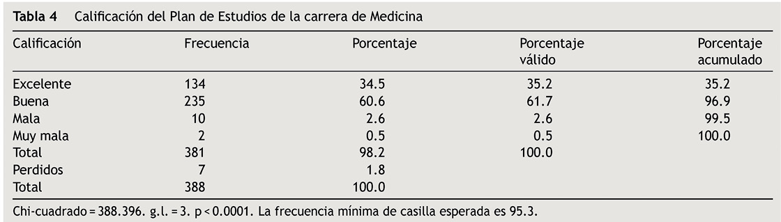 Tabla 4 Calificación del Plan de Estudios de la carrera de Medicina