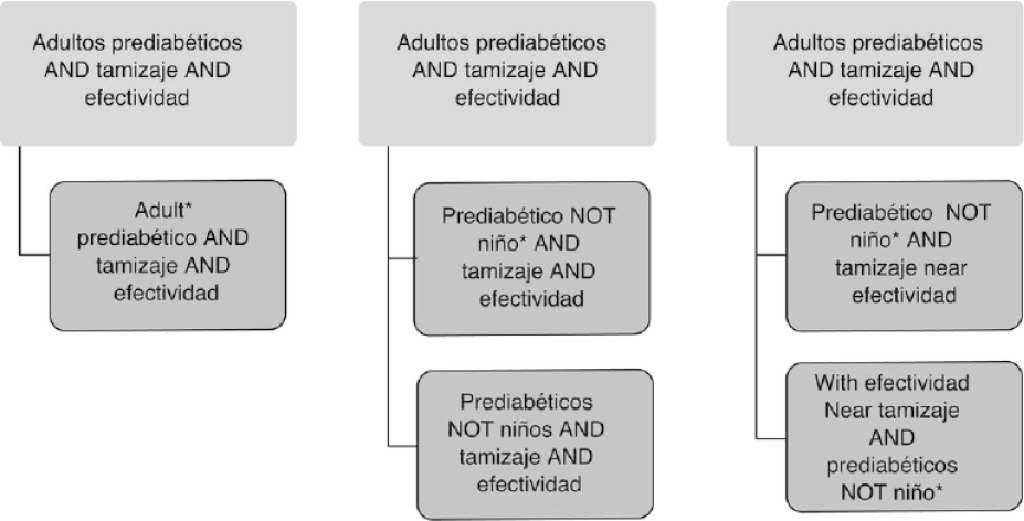 No todos los resultados filtrados fueron relevantes para el tema de investigación. Por ejemplo, en el caso de UpToDate, de las 150 monografías resultado del uso de la estrategia de búsqueda, únicamente una monografía correspondió a tamizaje para prediabetes, el resto fueron de otras entidades nosológicas.