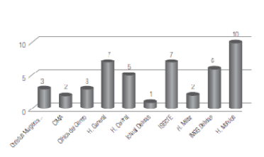 5.Promoción de bibliohemerotecas en cada uno de los hospitales, laboratorio de anatomía patológica y estacionamiento seguro para los MIP5 (Figura 1).