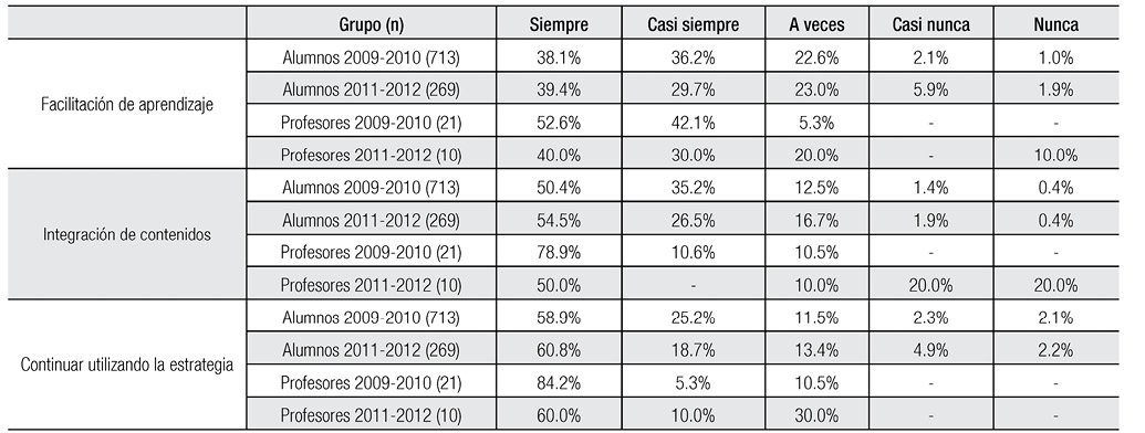 Resultados: Los alumnos y profesores opinaron que la estrategia facilitó el aprendizaje, integró los contenidos con otras asignaturas y sugirieron seguir utilizando la técnica.