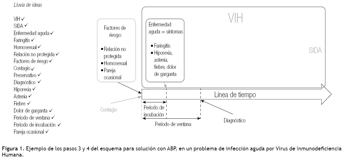 Los materiales necesarios para aplicar esta metodología son: problema o situación clínica, guía del tutory material para el alumno. Para su aplicación requiere el trabajo en grupos de ocho a 10 participantes. El eje del ABP es el problema o situación clínica que hay que explicar, resolver o reflexionar, el cual se aborda a través de pasos sistematizados.4