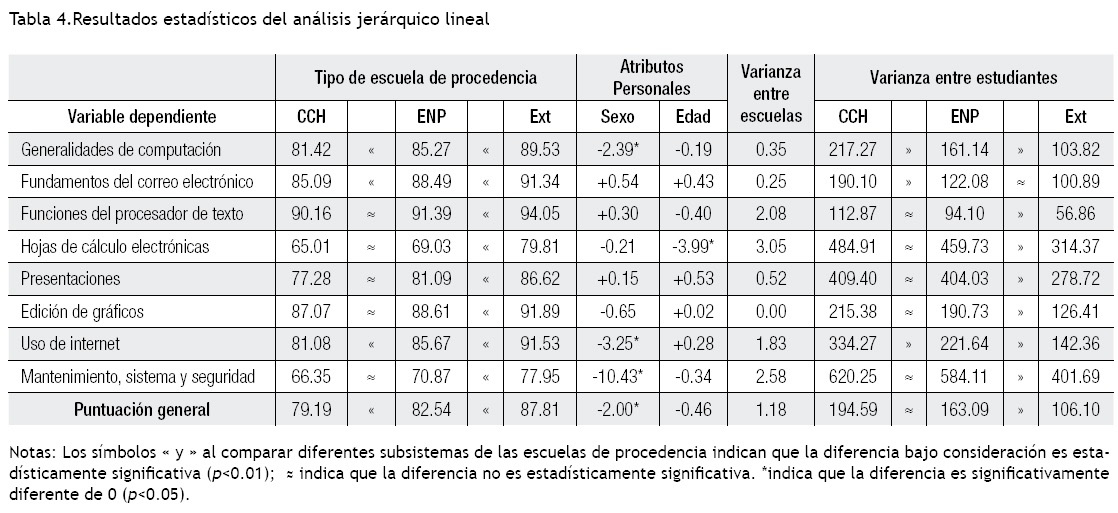 Methods: An observational, descriptive, cross-sectional study was conducted in first-year students of the Faculty of Medicine at UNAM in the city of Mexico. The inclusion criteria included students who were enrolled in their first year of the program in 2010 and who agreed to participate in the study. We applied a questionnaire with proven validity and reliability created by a group of researchers that was based on a review of the literature and included eight categories of computer literacy. We adjusted a hierarchical linear model to investigate how the school of origin and personal variables such as age and sex were related to knowledge and computer skills. The research protocol for this study was approved by the committee of ethics and research of the Faculty of Medicine at UNAM.