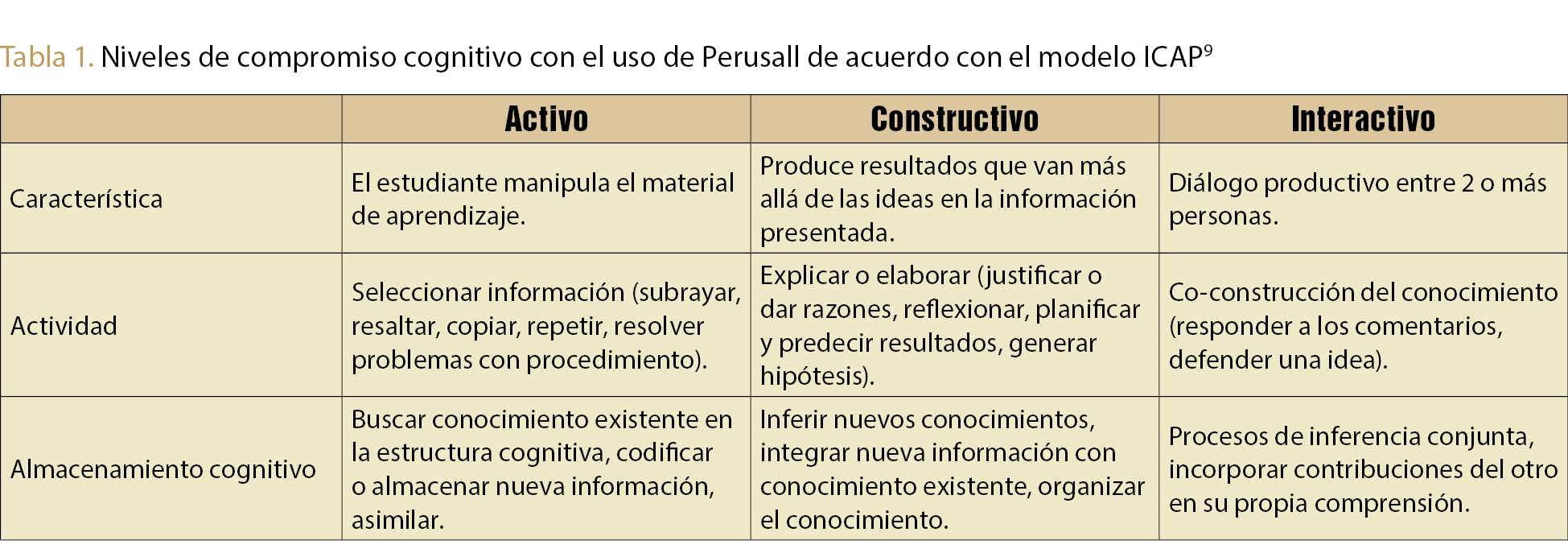 Así, los estudiantes al comparar ideas, aplicar nuevos conceptos y evaluar argumentos, se encuentran mejor preparados para discutir un tema. En el estudio realizado por Suhre y cols., en 2019, encontraron que Perusall contribuye al aprendizaje profundo en aquellos estudiantes que realizaron las tareas de anotación de acuerdo con las indicaciones, lo que se tradujo en notas más altas en la evaluación final7.